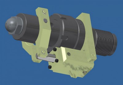 A abertura e o fechamento do bico são controlados por meio hidráulico ou pneumático.